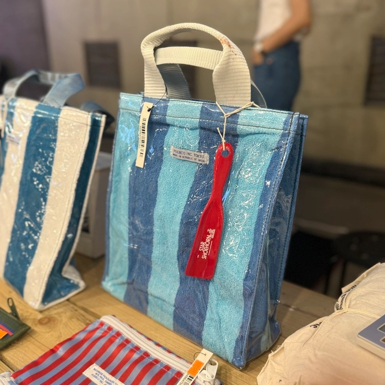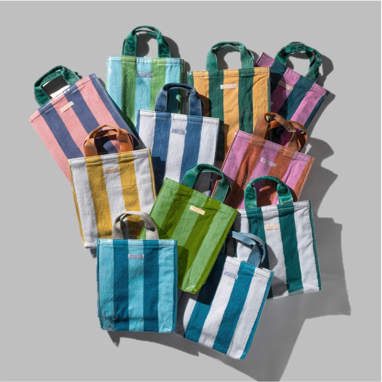 리사이클된 타올을 반짝 거리는 PVC가 깔끔하게 잡아주어